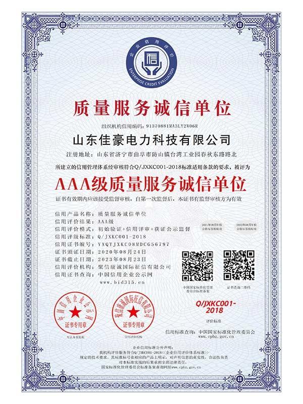 AAA級質(zhì)量服務(wù)誠信單位_中文版