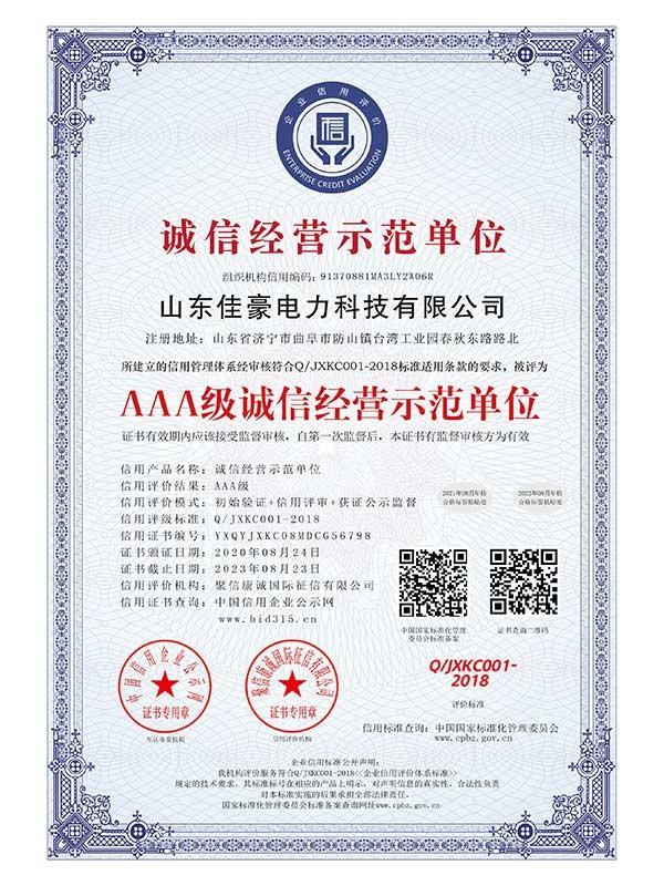 AAA級誠信經(jīng)營示范單位_中文版